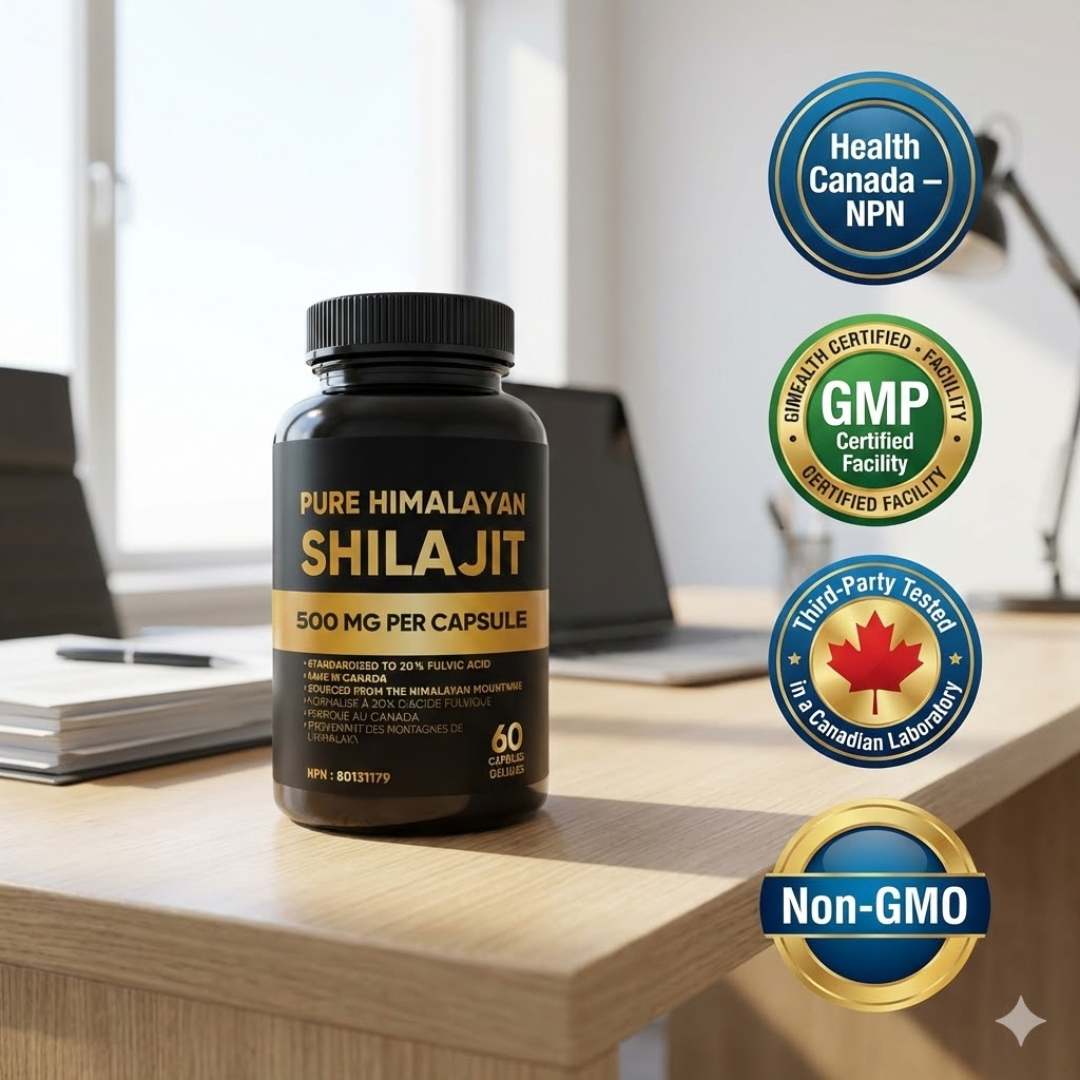 Ours doesn’t. We use ultra-pure Himalayan Shilajit only, carefully purified, precisely dosed, and manufactured in Canada under strict GMP standards, with every batch independently tested for purity, safety, and consistency.