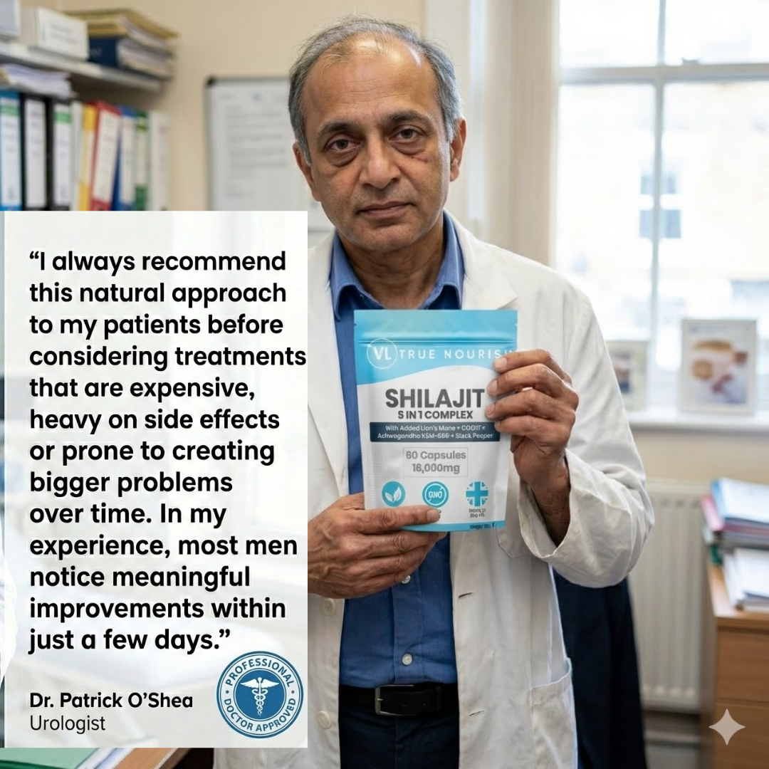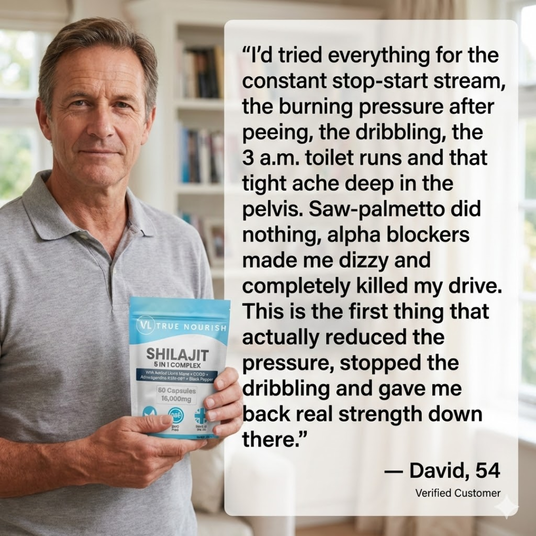 Most prostate supplements online rely on weak extracts or low-grade blends. Ours is different. It contains ultra-pure Shilajit extracted at 3,600 metres in the Himalayas, enhanced with Ashwagandha KSM-66®, Lion’s Mane, CoQ10 and Black Pepper to support hormonal balance, circulation, nerve signaling and superior absorption.